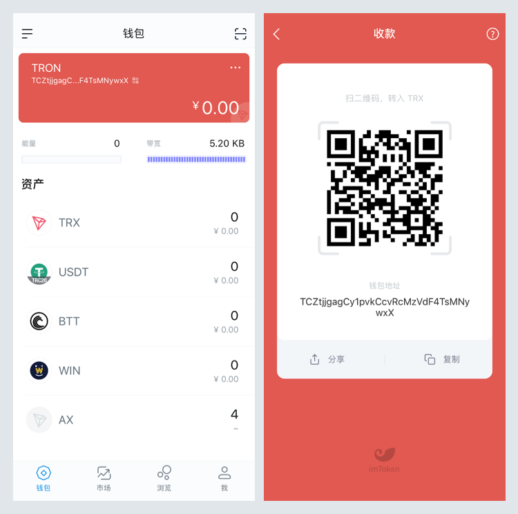 imToken目前支持以太坊、BTC、EOS以及众多ERC20代币,满足不同资产管理需求。